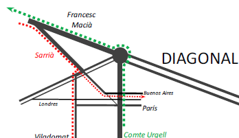 - El paso de Diputació y Castillejos por la Diagonal.